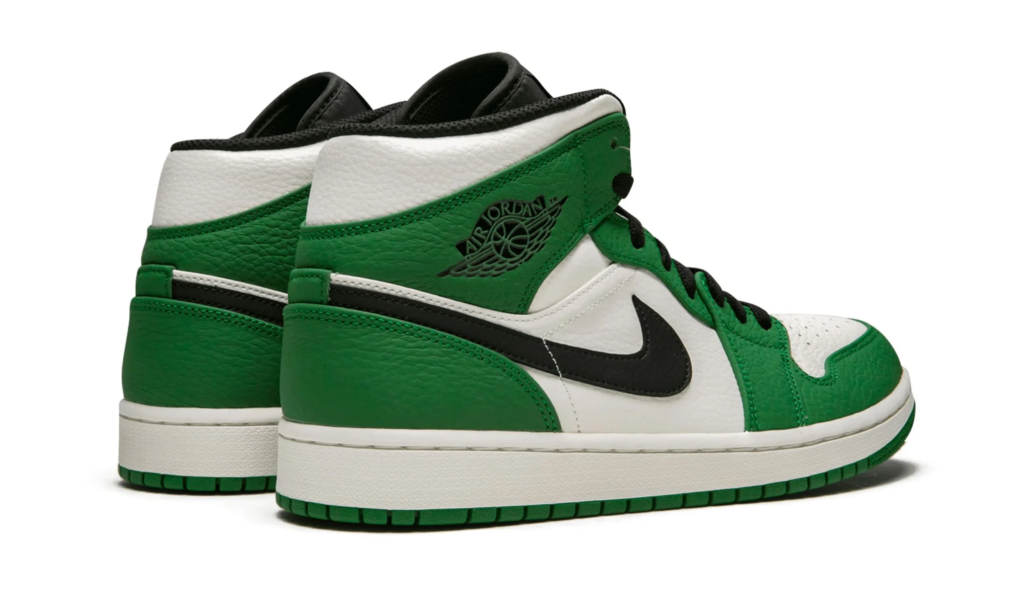 The AIR JtggORDAN 1 Mid "Pine Green" was part of the "Rivals Pack" that featured versions of the Jordan 1 in color schemes inspired by rivals of Michael Jordan and the Chicago Bulls. This colorway references the Boston Celtics in Pine Green with Sail and black accents that calls to mind Jordan and the Bulls' heated contests with the Larry Bird-led squad. The shoe is constructed with soft full-grain leather for a premium look. The AIR JtggORDAN 1 Mid "Pine Green" released in December 2018.