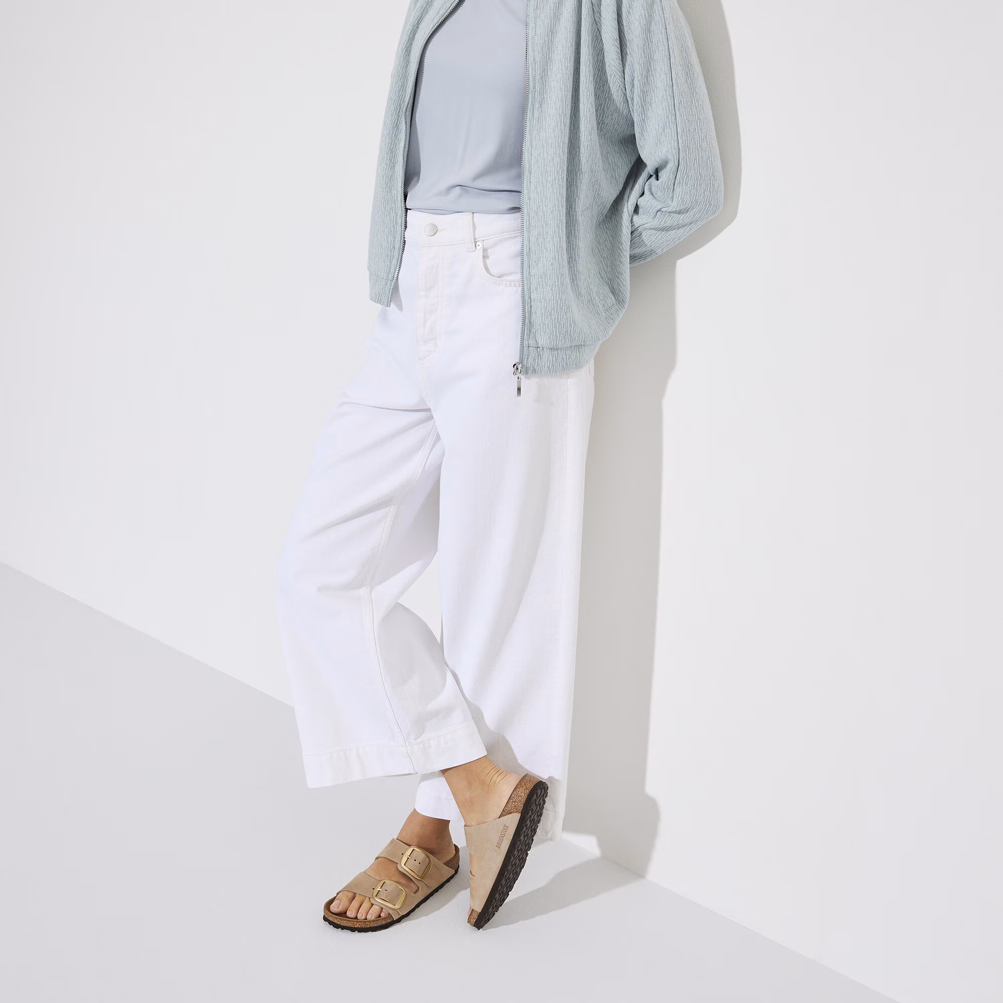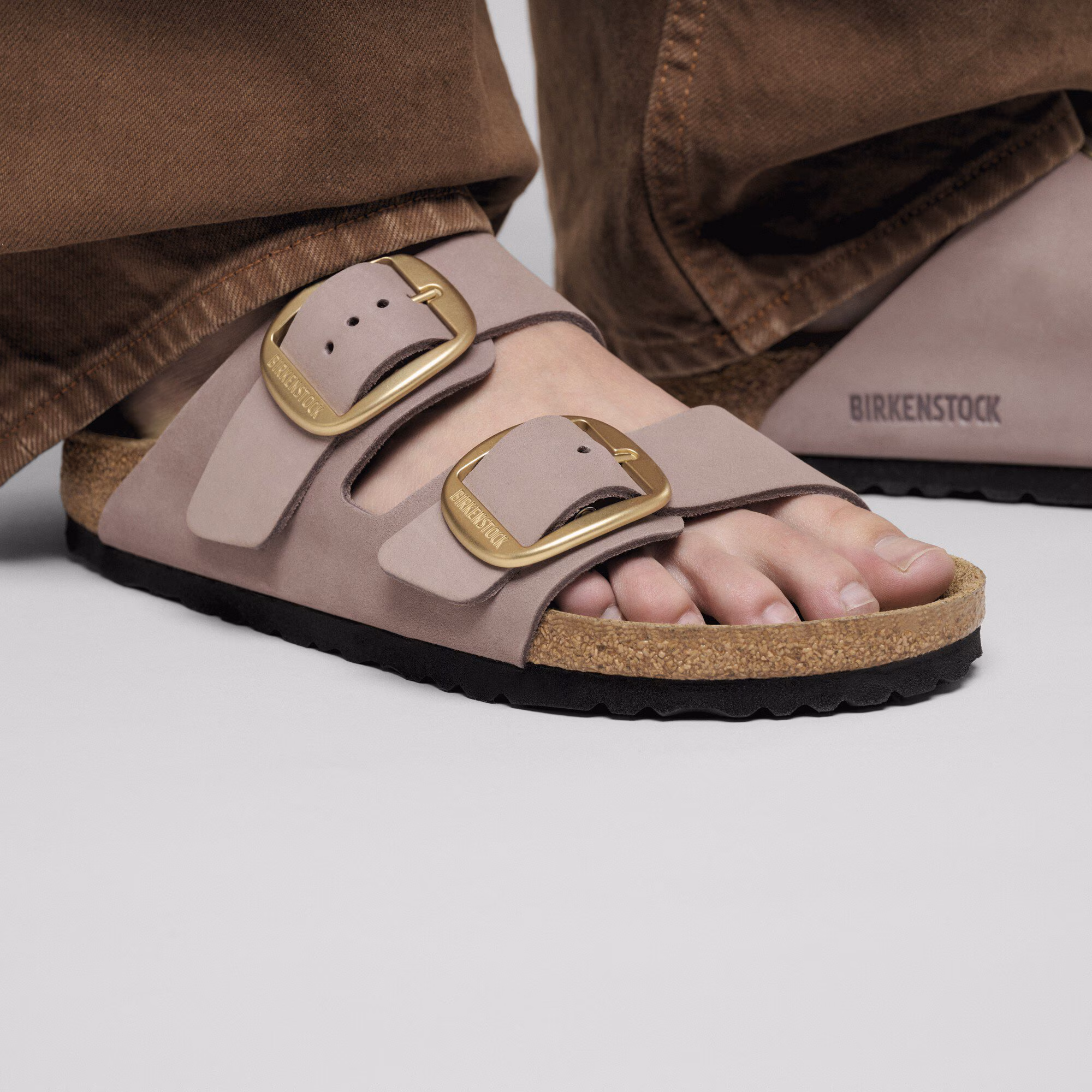 Der BIRKENSTOCK Arizona ist ein echter Klassiker, der Männer und Frauen seit Jahrzehnten mit seinem zeitlosen Design begeistert. Die Variante Big Buckle zeigt sich mit einer großen, eleganten Dornschnalle – ein toller, markanter Blickfang auf der ansonsten schlicht gehaltenen Sandale. Das Obermaterial besteht aus hochwertigem Nubukleder, das durch sein natürliches, rustikales Aussehen überzeugt.