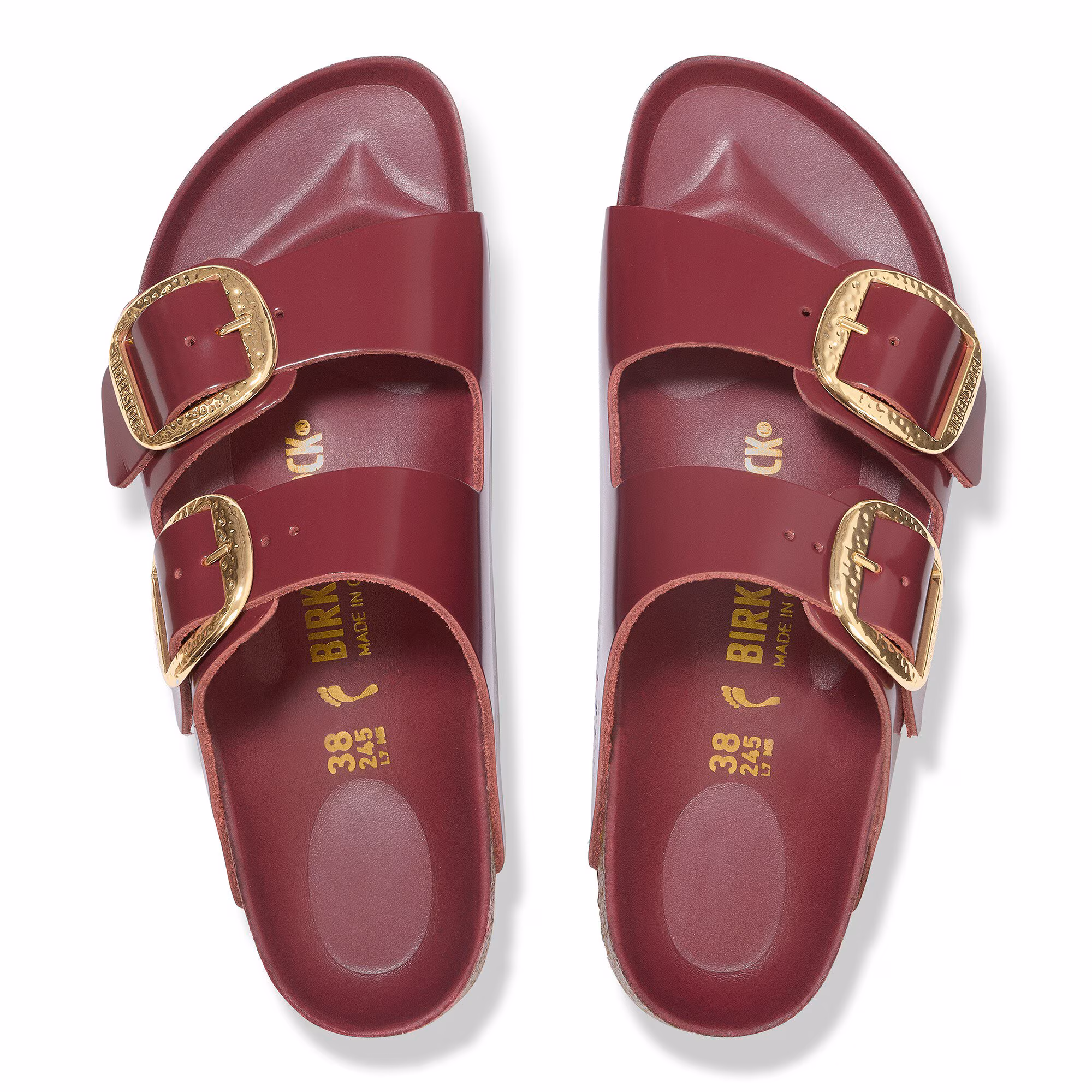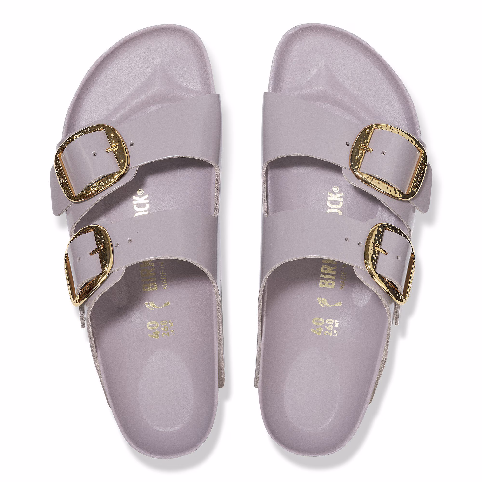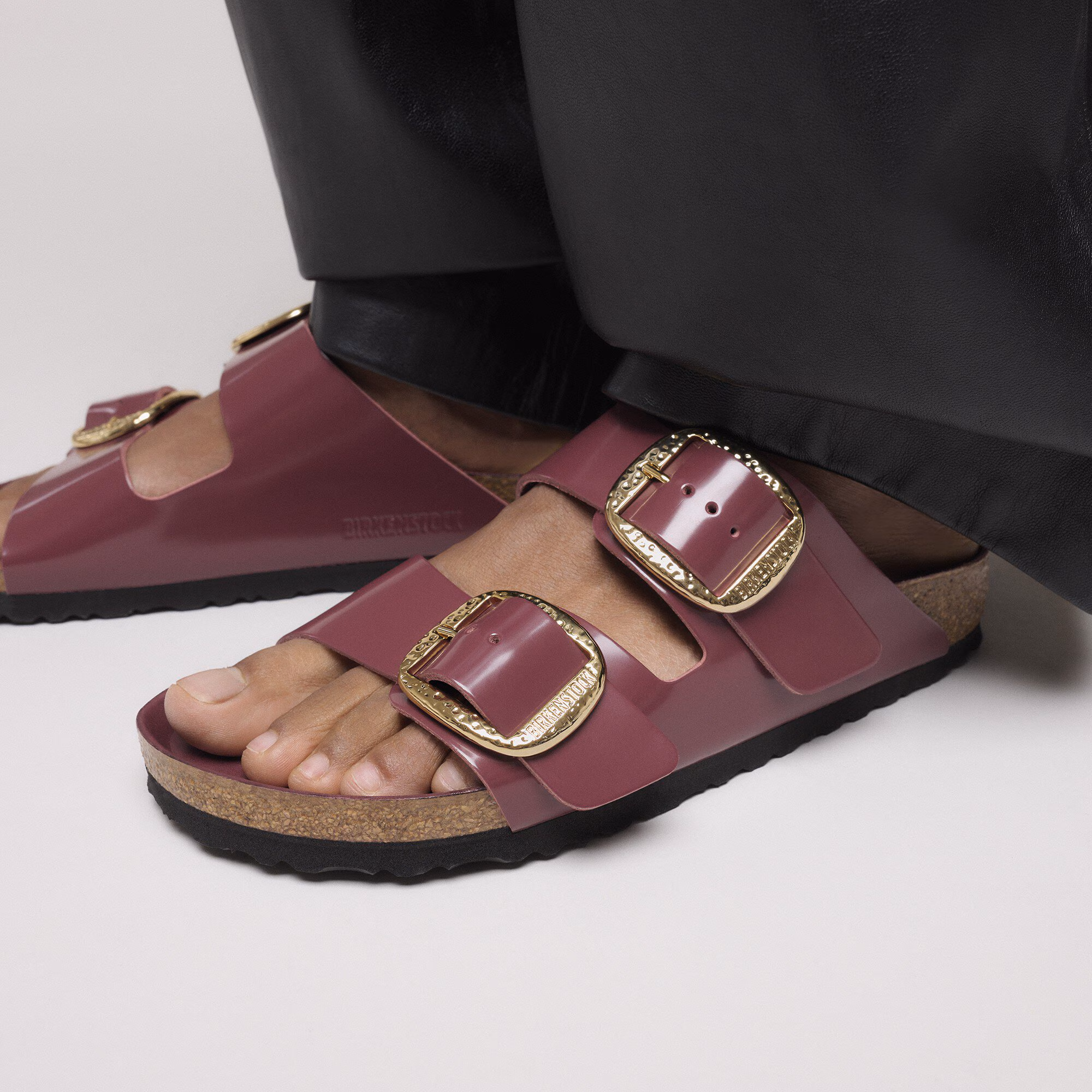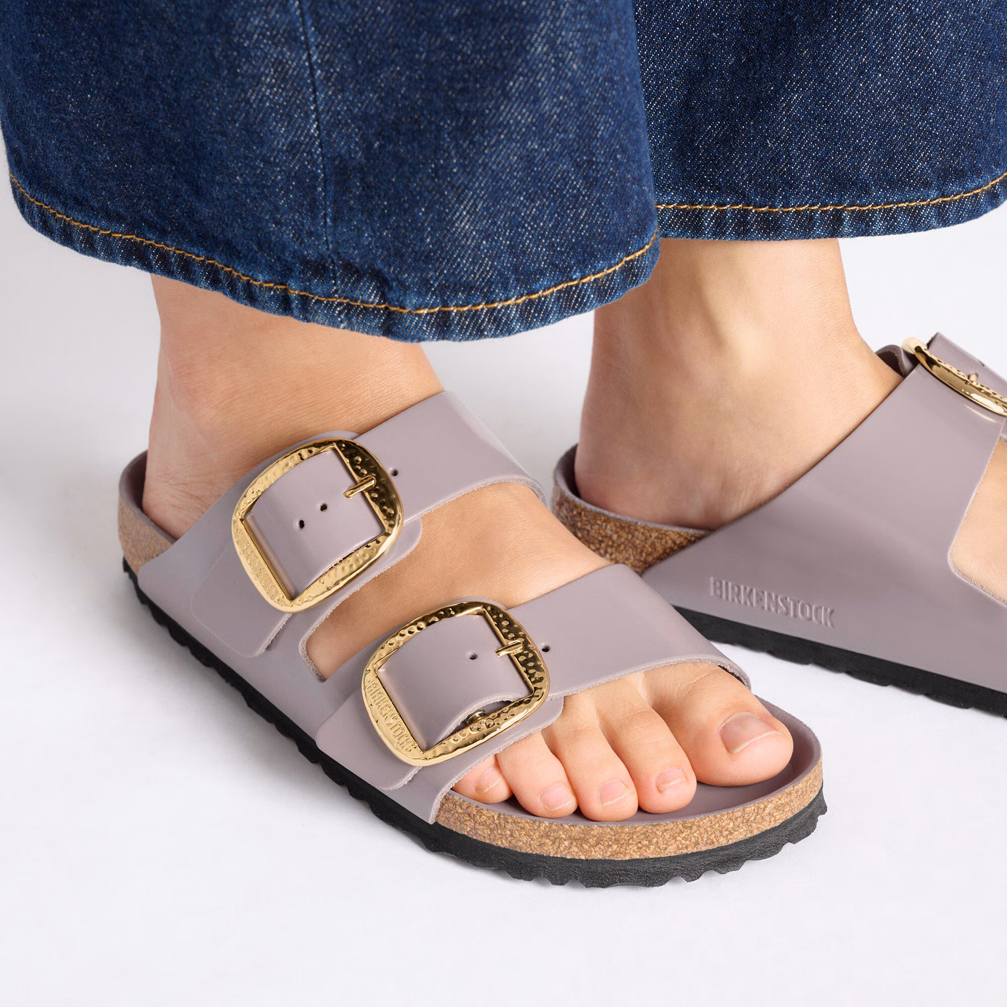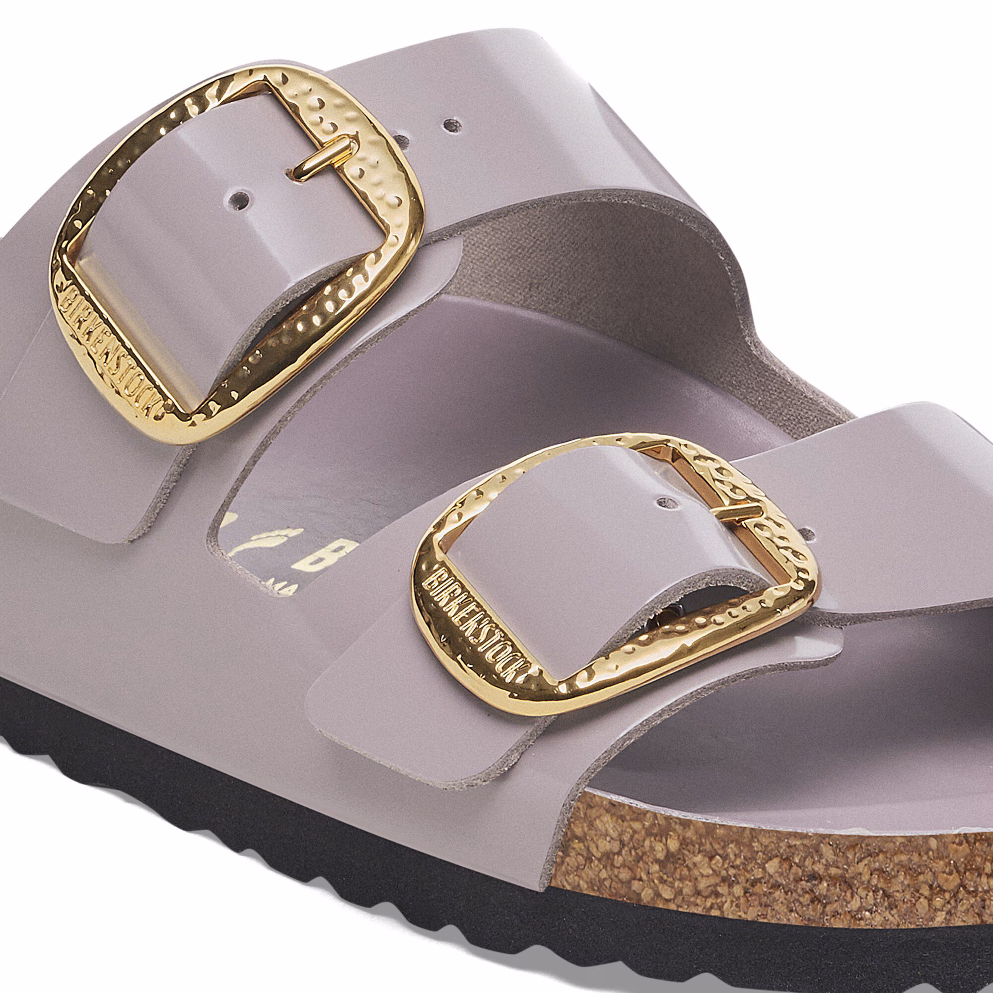 Der BIRKENSTOCK Arizona ist ein echter Klassiker, der Männer und Frauen seit Jahrzehnten begeistert. Die schlichte Sandale mit den zwei Riemen steht für zeitloses Design und hat sich längst zu einem komfortablen Kultschuh entwickelt. Die Big Buckle Hammered-Variante präsentiert sich durch ihre großen, eleganten Dornschnallen und ihr handgehämmertes Design in unverwechselbarer Weise. Ein beeindruckender und markanter Blickfang auf der ansonsten schlichten Sandale.Das Obermaterial besteht aus hochwertigem Naturleder mit glänzender Lackbeschichtung.