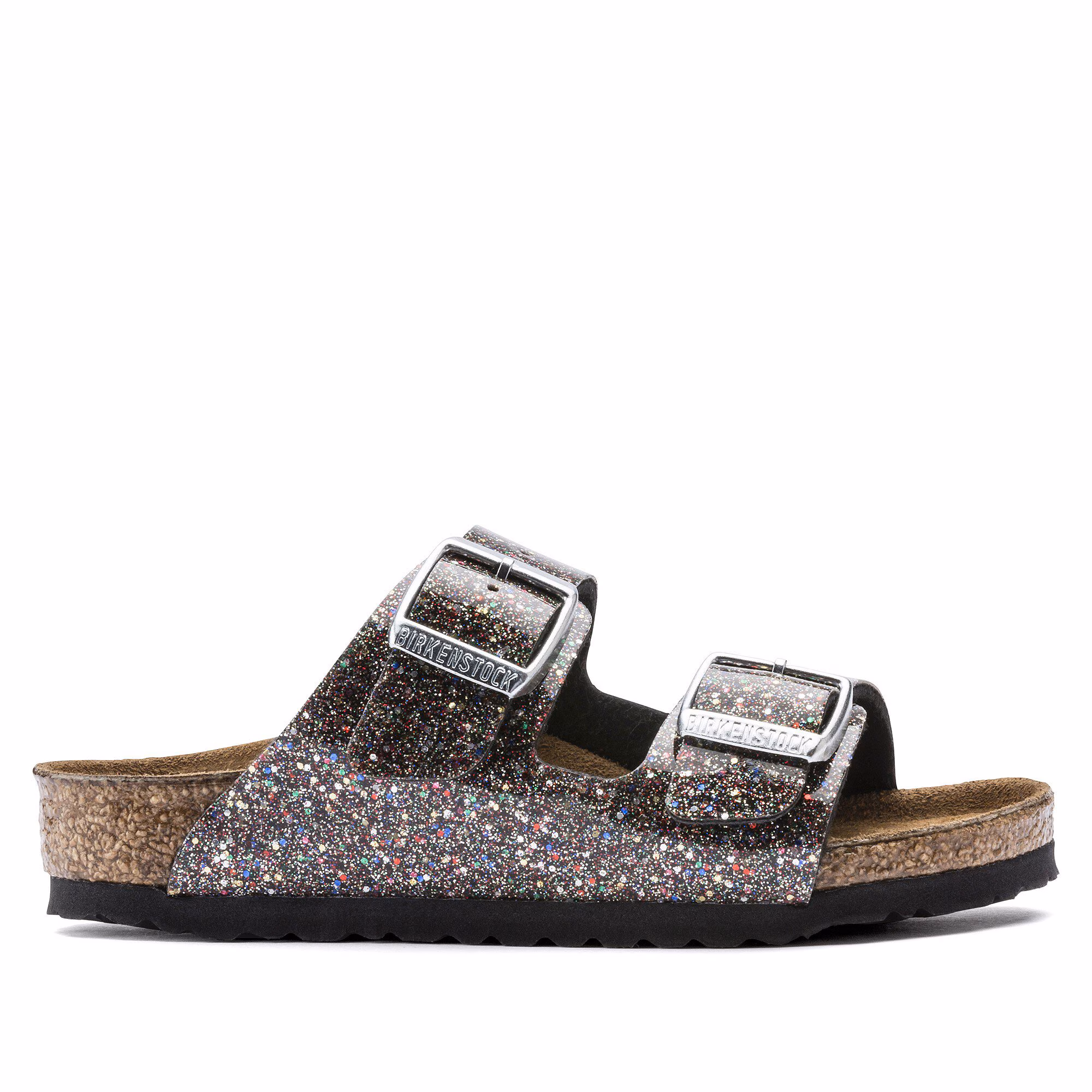 Der BIRKENSTOCK Arizona ist ein echter Klassiker, der seit Jahrzehnten mit seinem zeitlosen Design begeistert. Der Zweiriemer sitzt optimal am Kinderfuß – auch beim wilden Toben! Die Variante Cosmic Sparkle zeigt sich mit auffälligem Glitzer-Effekt und Hochglanzbeschichtung, was die Sandale funkeln und sie besonders elegant erscheinen lässt. Das Obermaterial besteht aus dem hautfreundlichen und strapazierfähigen Synthetikmaterial Birko-Flor®.