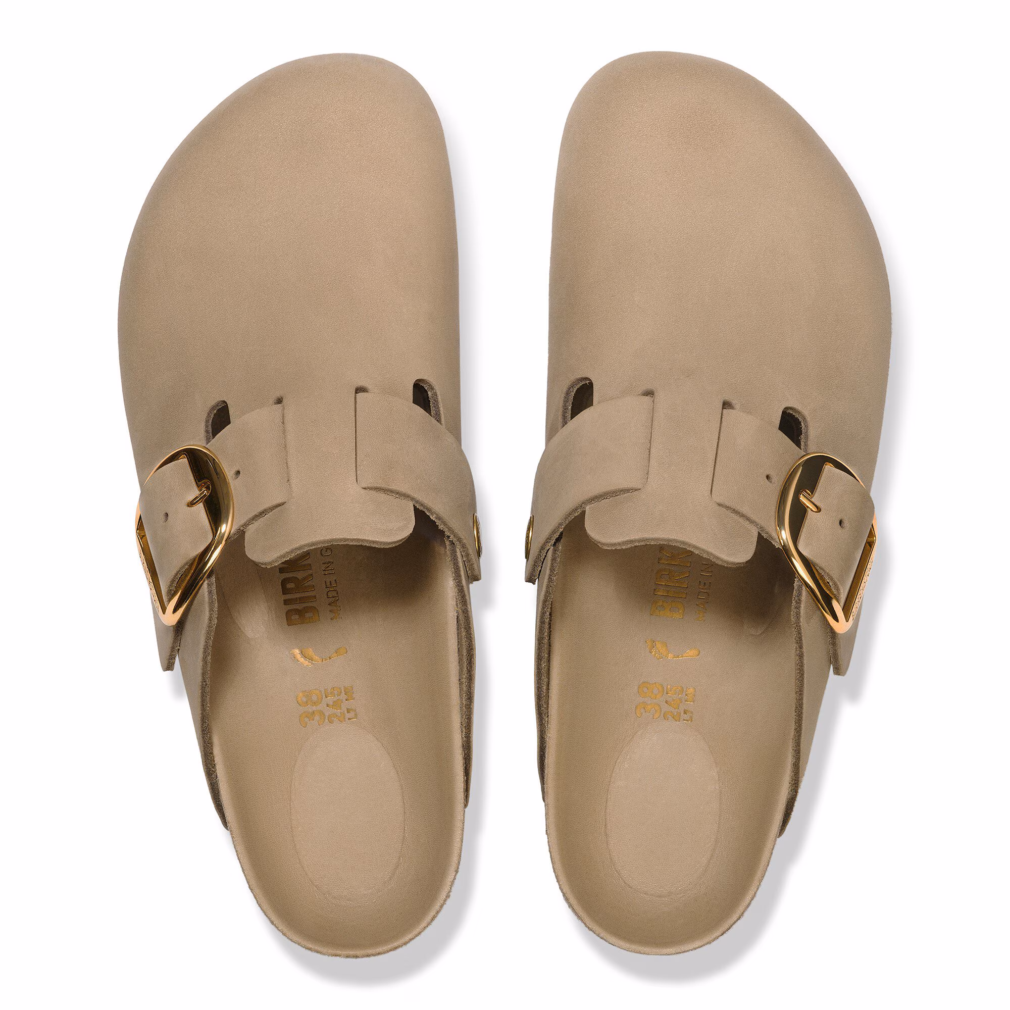 Der BIRKENSTOCK Boston ist ein echter Klassiker, der sich problemlos das ganze Jahr über tragen lässt. Mit seinem raffinierten, individuell verstellbaren Design genießt der Boston längst Legendenstatus. Die Variante Big Buckle zeigt sich mit einer großen, eleganten Dornschnalle. Das Exquisit-Fußbett ist komplett mit weichem Piumato-Leder bezogen und sorgt für einen außergewöhnlich hohen Tragekomfort. Das Obermaterial besteht aus besonders dickem, geöltem Nubukleder, das offenkantig verarbeitet wurde.