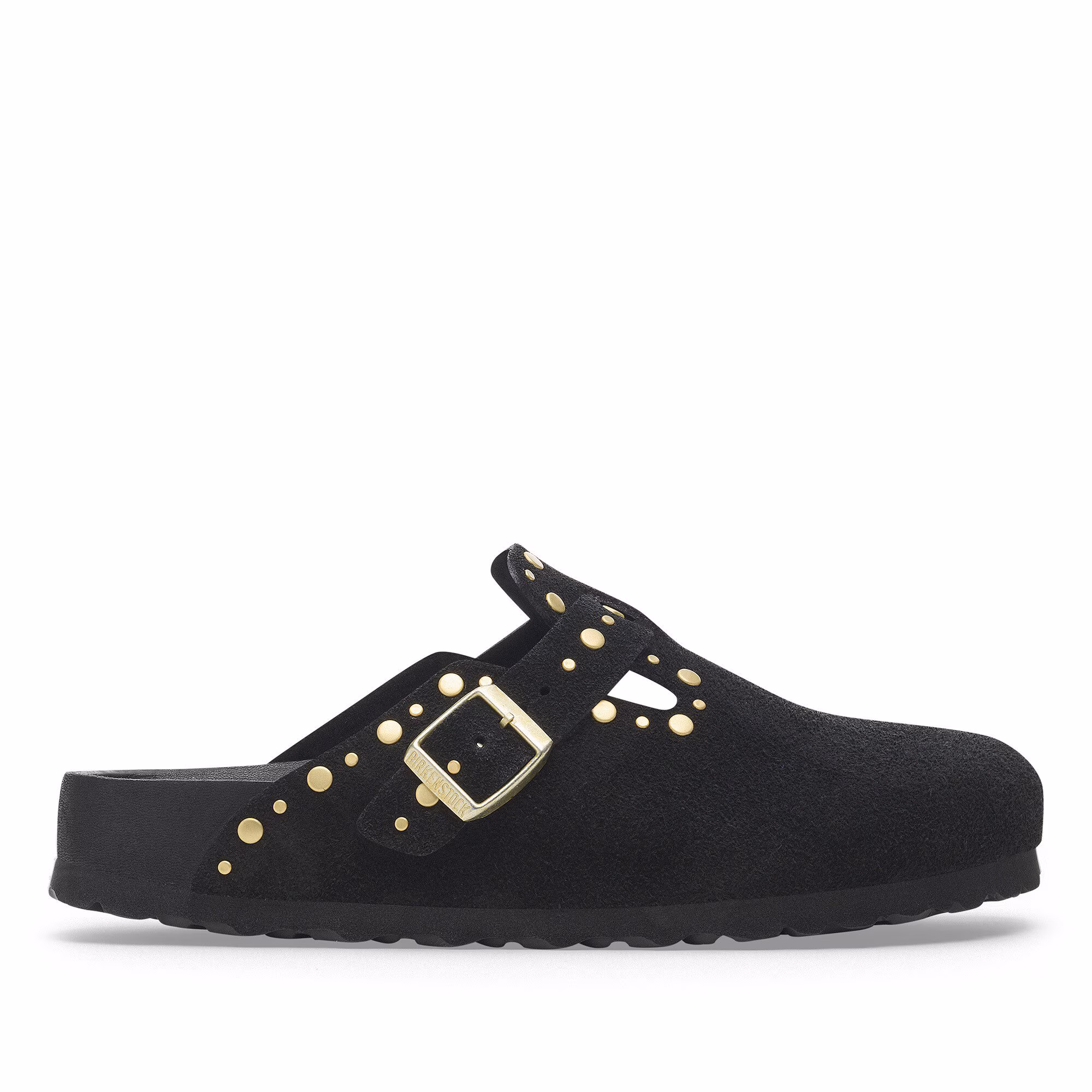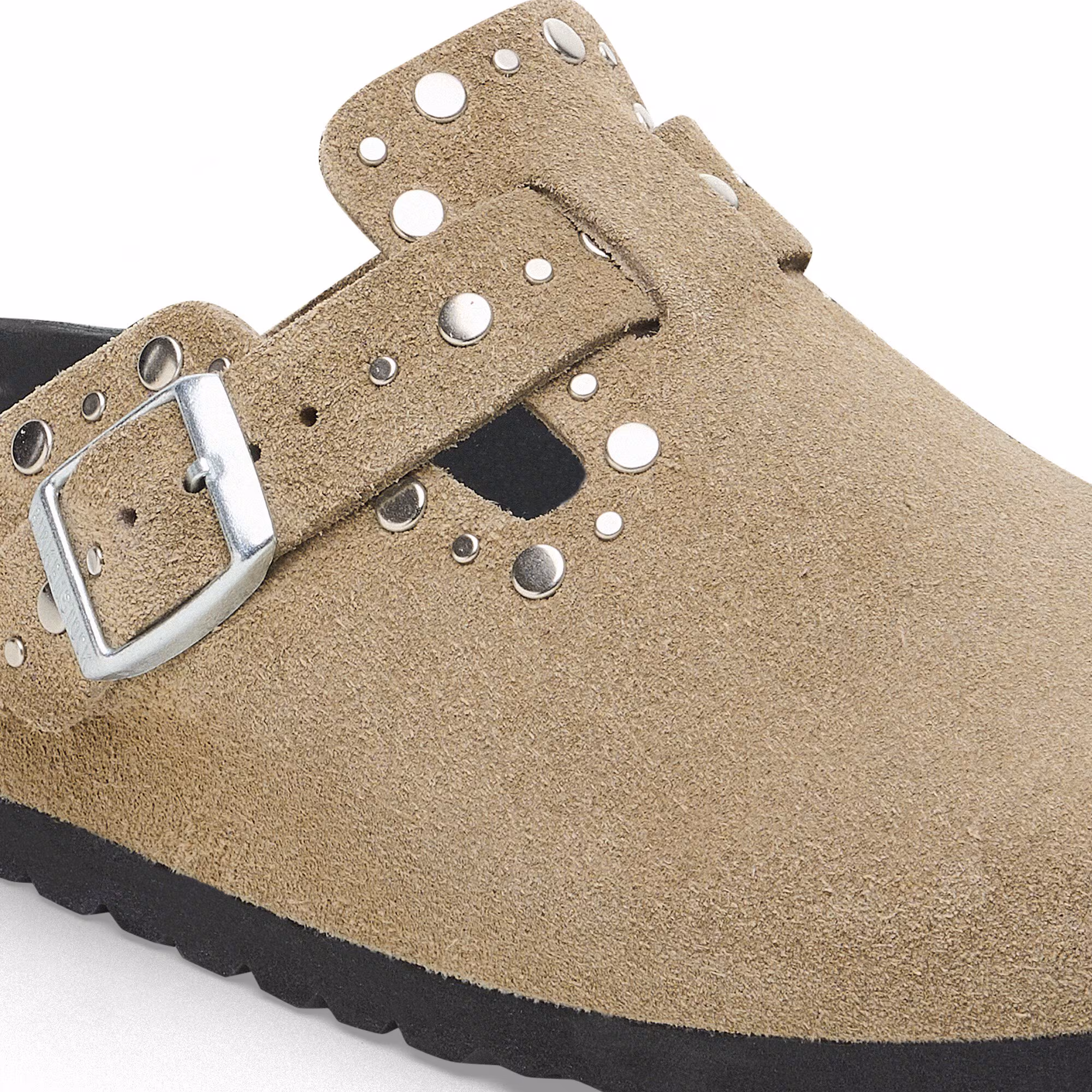 Der BIRKENSTOCK Boston ist ein echter Klassiker, der sich problemlos das ganze Jahr über tragen lässt. Mit seinem raffinierten, individuell verstellbaren Design genießt der Boston längst Legendenstatus. Das Exquisit-Fußbett ist komplett mit weichem Piumato-Leder bezogen und sorgt für einen außergewöhnlich hohen Tragekomfort. Diese Variante zeigt sich mit präzise gesetzten Nieten, die ohne Gegenstück besonders fest, aber nicht tief ins Leder eindringen und somit beim Tragen dank des aufwändigen Herstellungsprozesses nicht stören. Ein absoluter Blickfang! Das Obermaterial besteht aus besonders weichem Veloursleder, das sich wie eine zweite Haut an den Fuß anschmiegt.