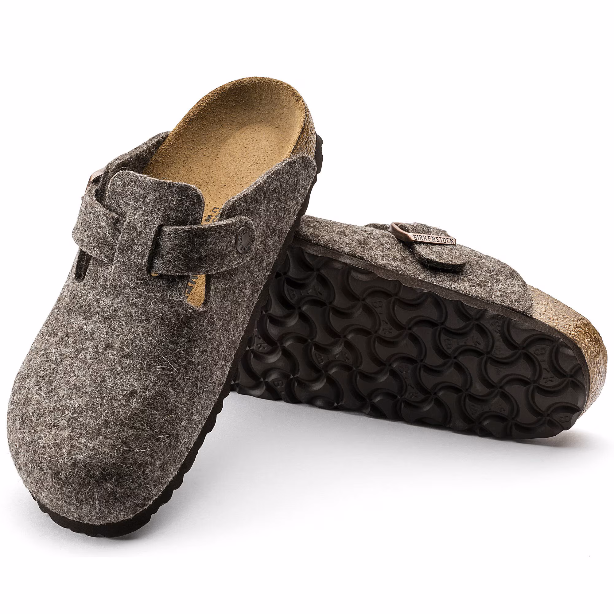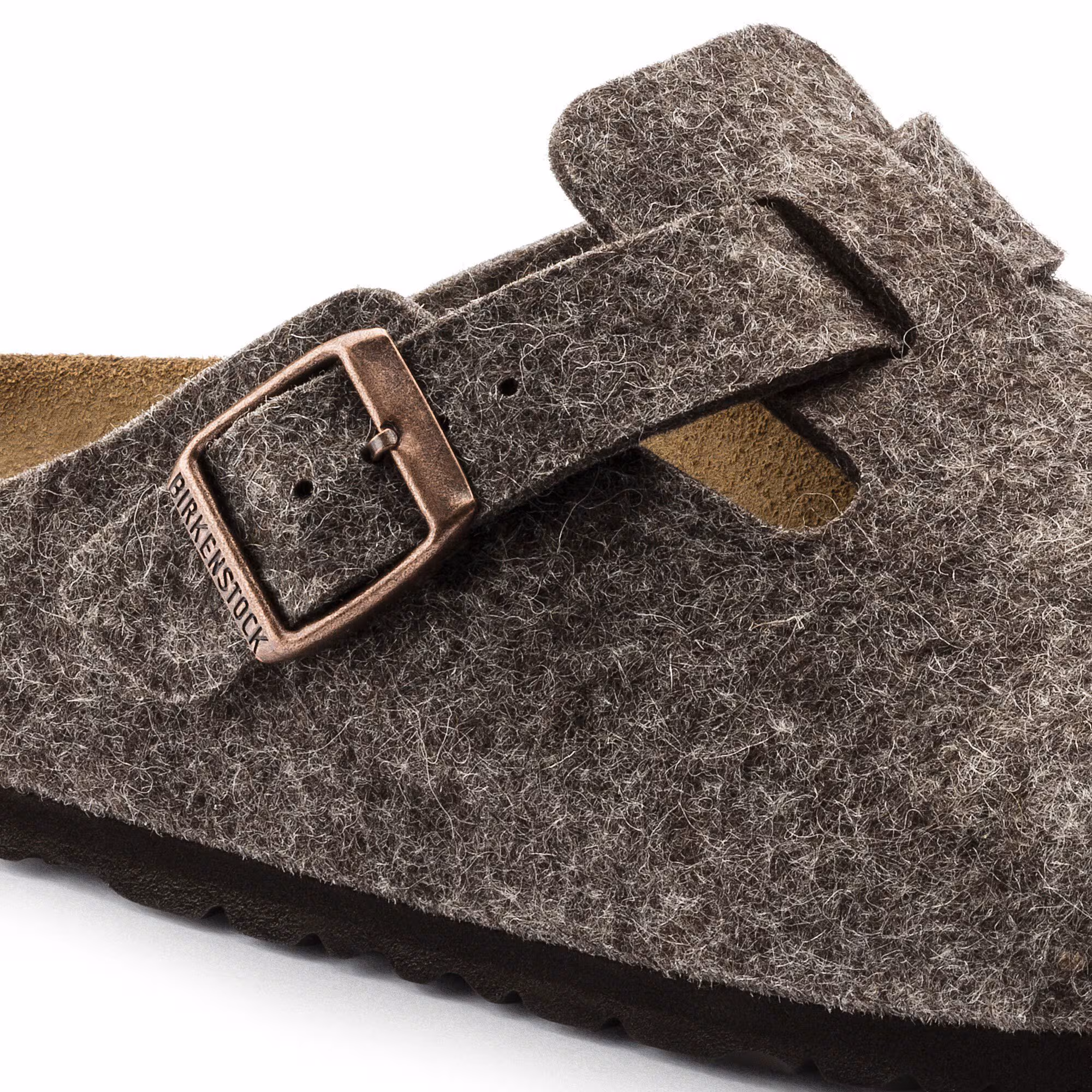 Der Clog Boston, ein Klassiker unter den BIRKENSTOCK Modellen, zeigt sich hier mit einem Schaft aus weichem, hochwertigem Wollfilz. Mithilfe des integrierten Riemens und einer stabilen Metallschnalle lässt sich der Clog jedem Fuß individuell anpassen.