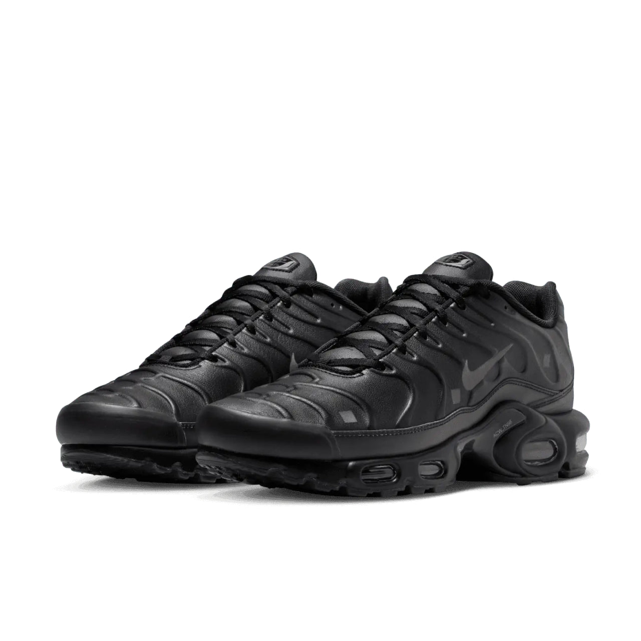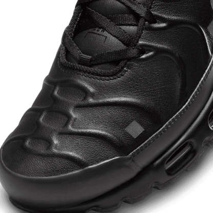 Pelle a grana piena texturizzata, è la base di questo aggiornamento radicale all'iconica silhouette delle Nike Air Max Plus. Un esoscheletro con dettagli esagerati di colla aggiunge tattilità alla superficie, mentre il doppio marchio assume forme multiple, dai fini UV trasparenti ai loghi incisi al laser. Un'estetica sorprendentemente minimale sostenuta da dettagli precisi.