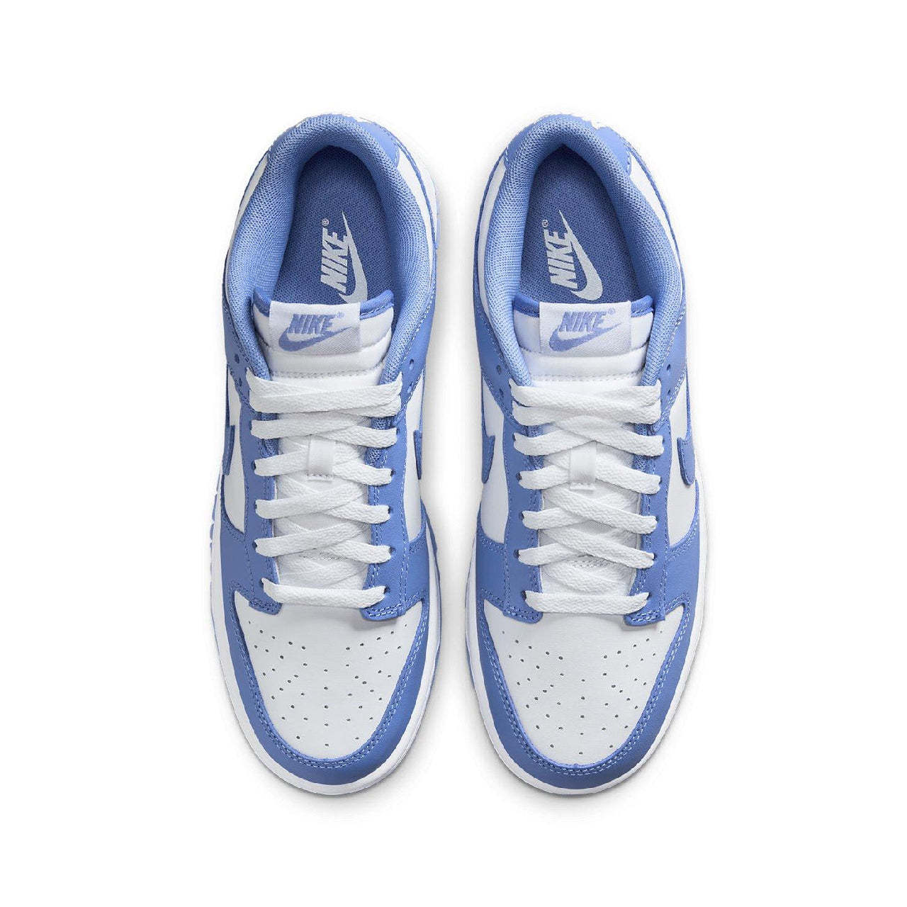 La tomaia delle Polar Blue è in pelle bianca con inserti e Swoosh in pelle blu. Il classico marchio Nike Air è posizionato sulla linguetta in nylon. L'intersuola bianca e la suola blu completano il capolavoro.