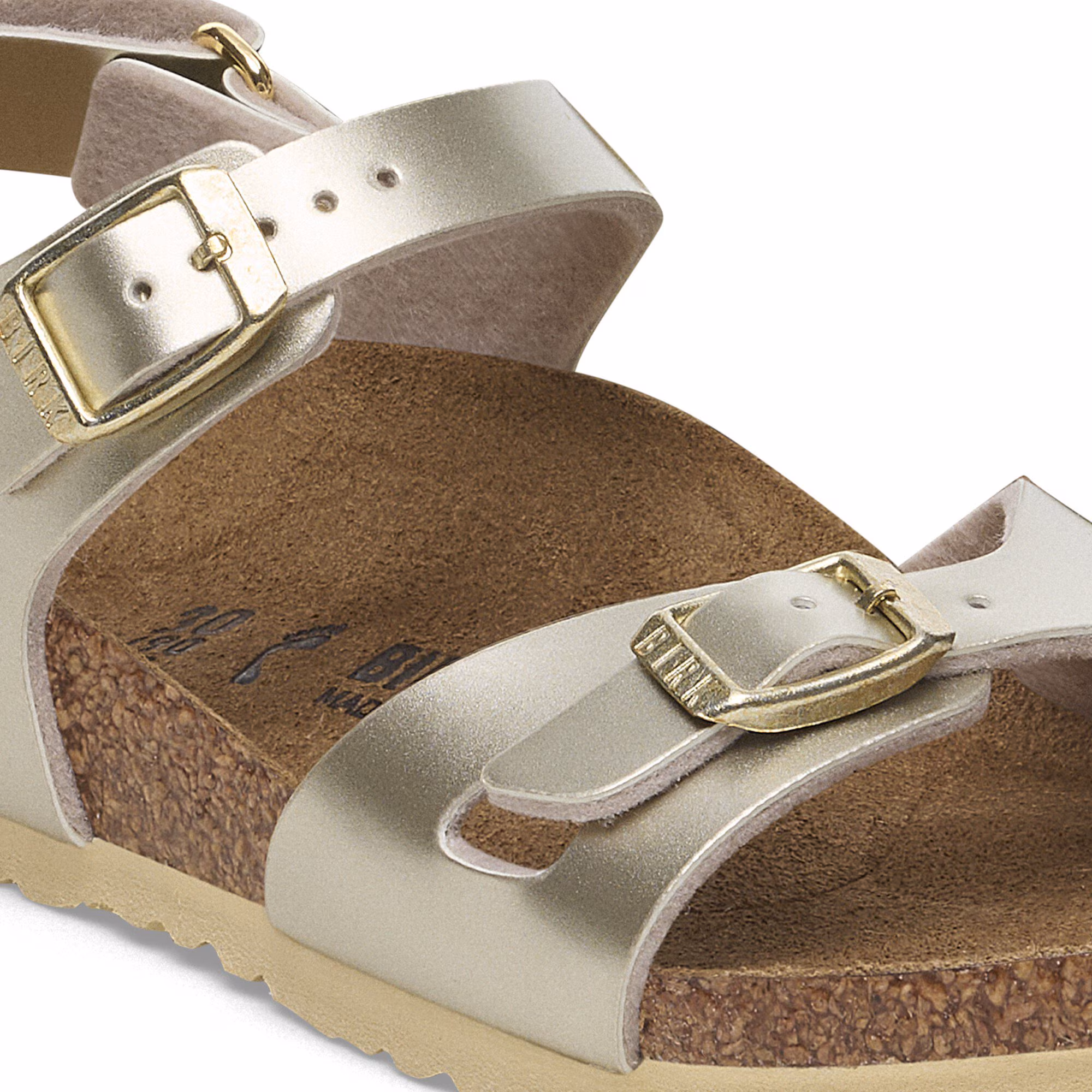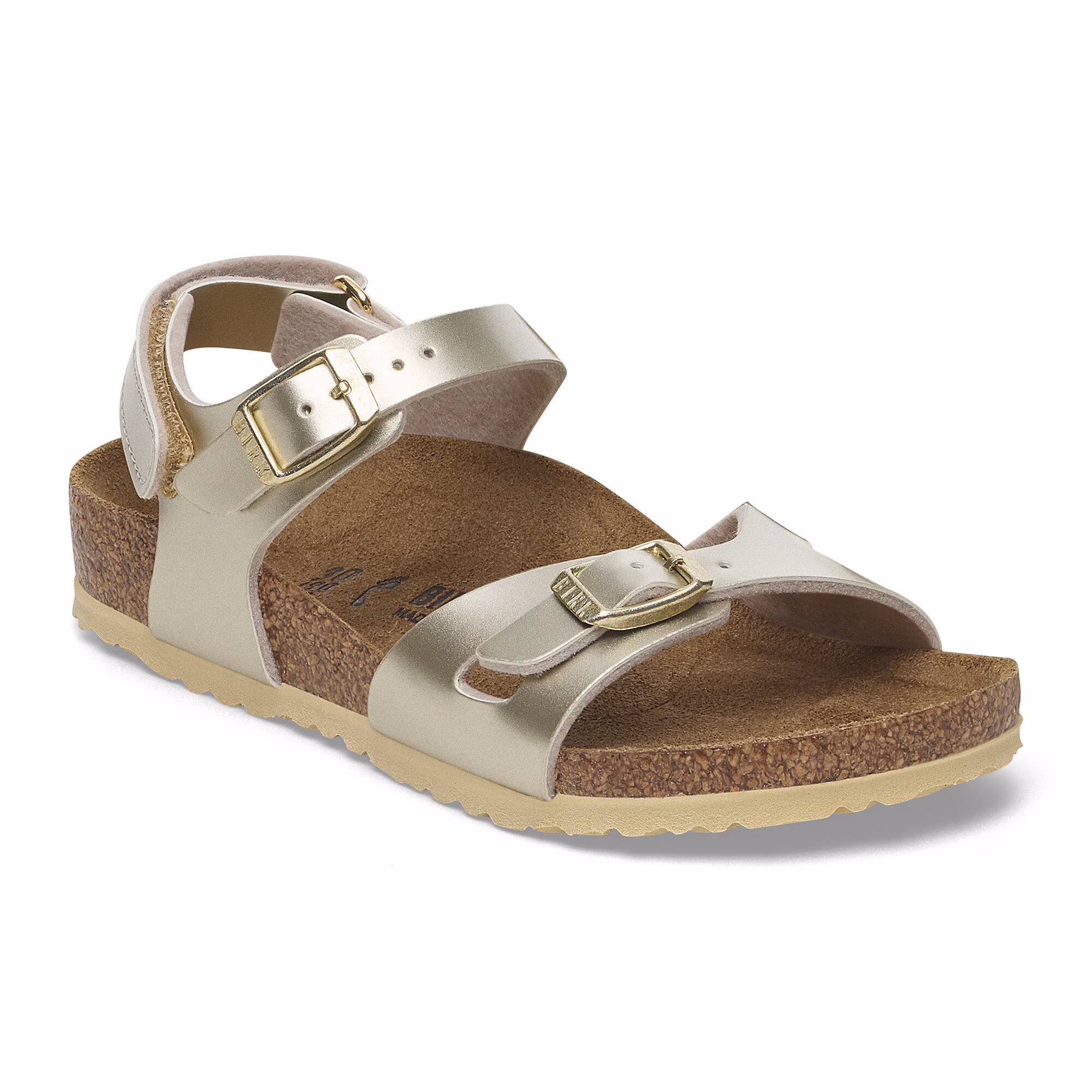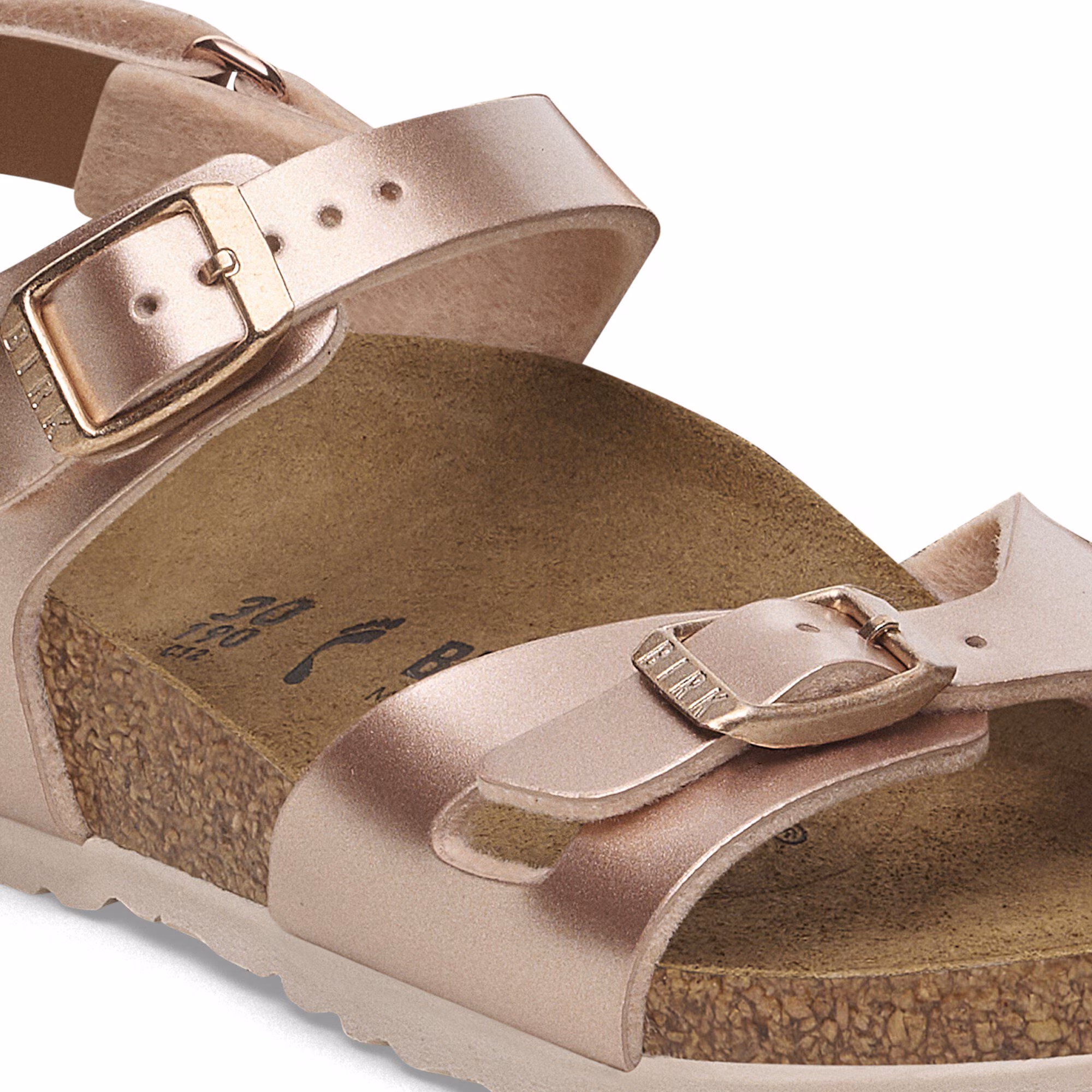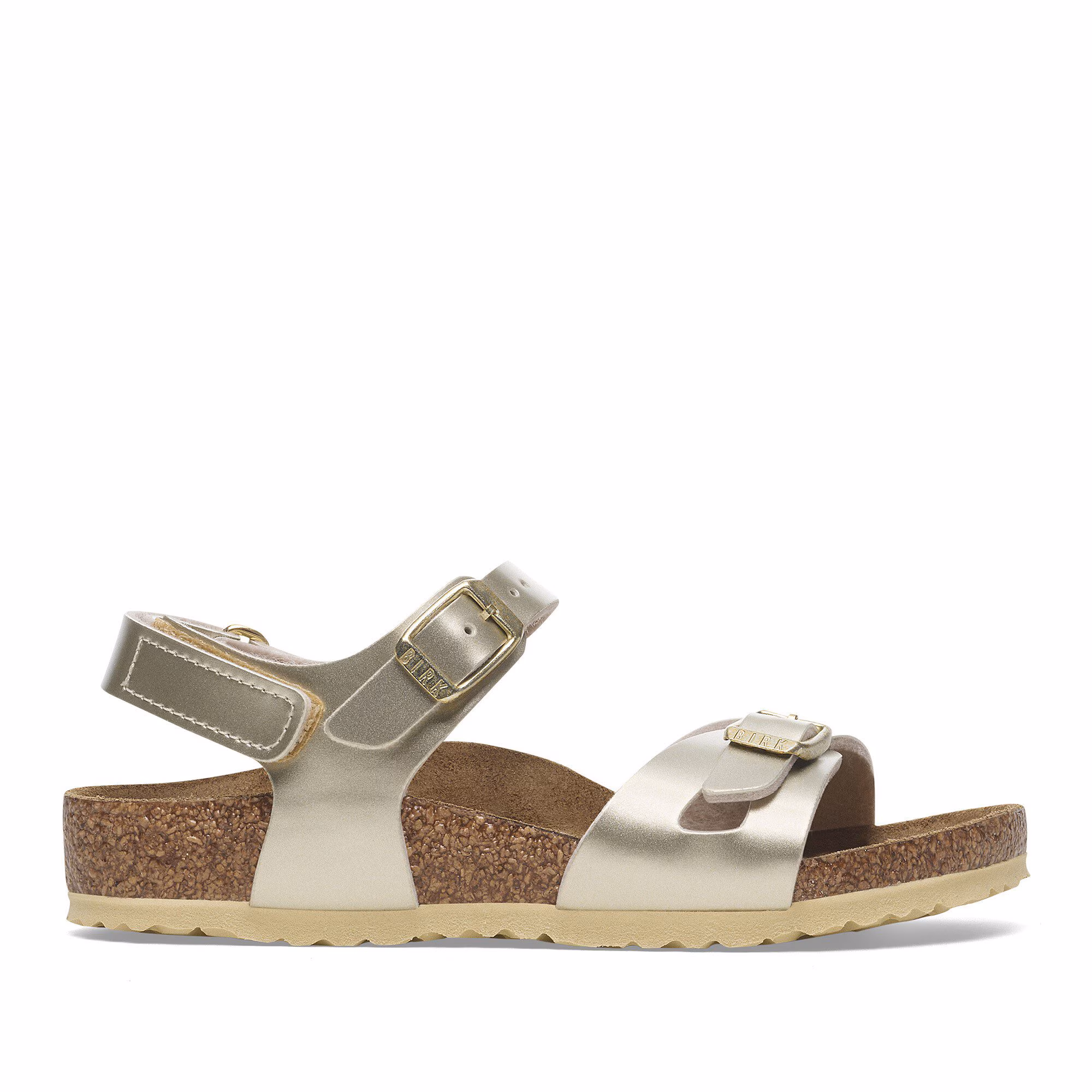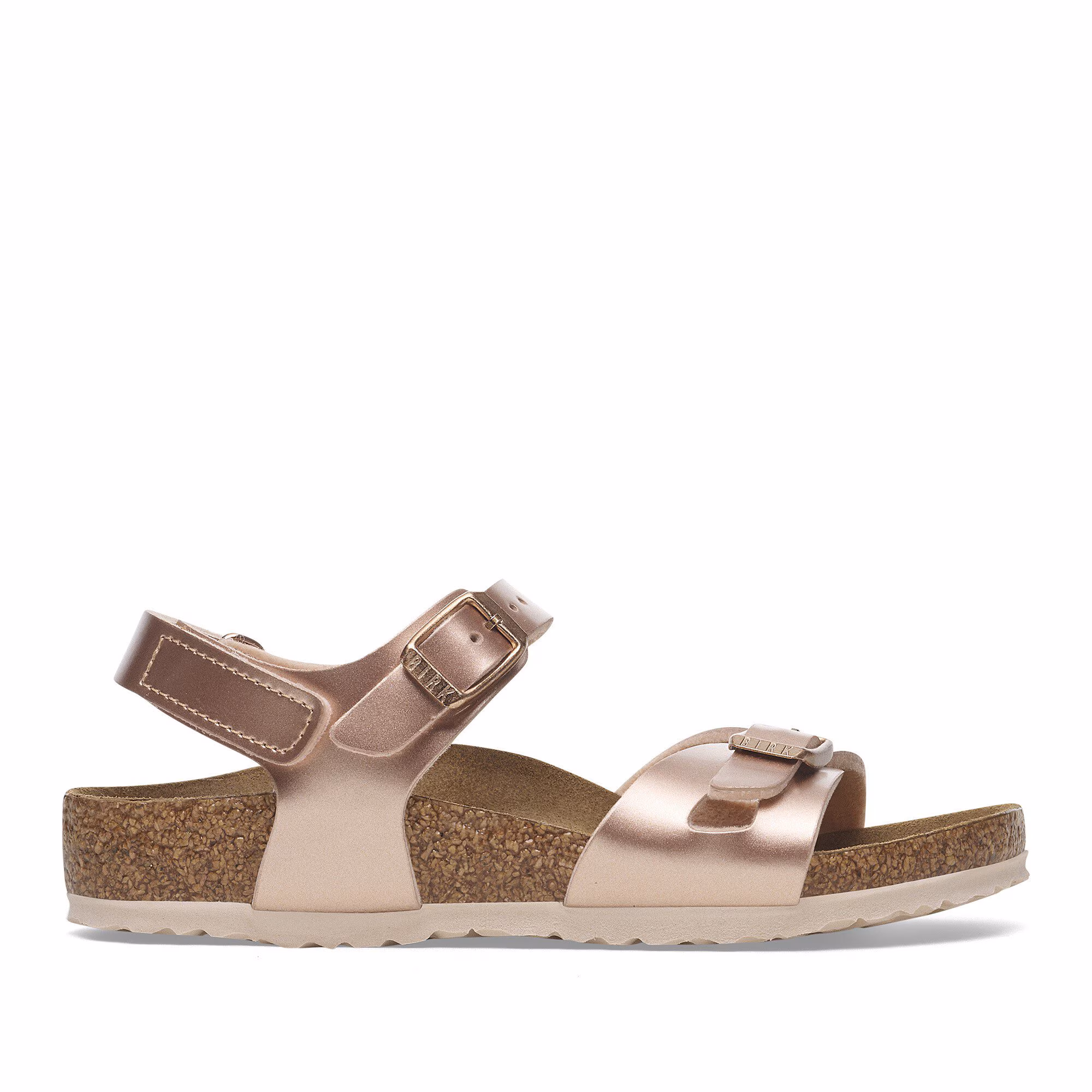 Der BIRKENSTOCK Rio ist eine sportlich-elegante Sandale mit Fersenriemen. Dieser sorgt für einen sicheren und komfortablen Halt – auch beim wilden Toben. Diese Sandale wurde im extravaganten Electric-Metallic-Look neu interpretiert. Die spiegelnde Folie lässt den Klassiker in neuem Glanz erstrahlen und macht garantiert jedes Outfit zu einem Blickfang. Das Obermaterial besteht aus hautfreundlichem und strapazierfähigem Birko-Flor®.