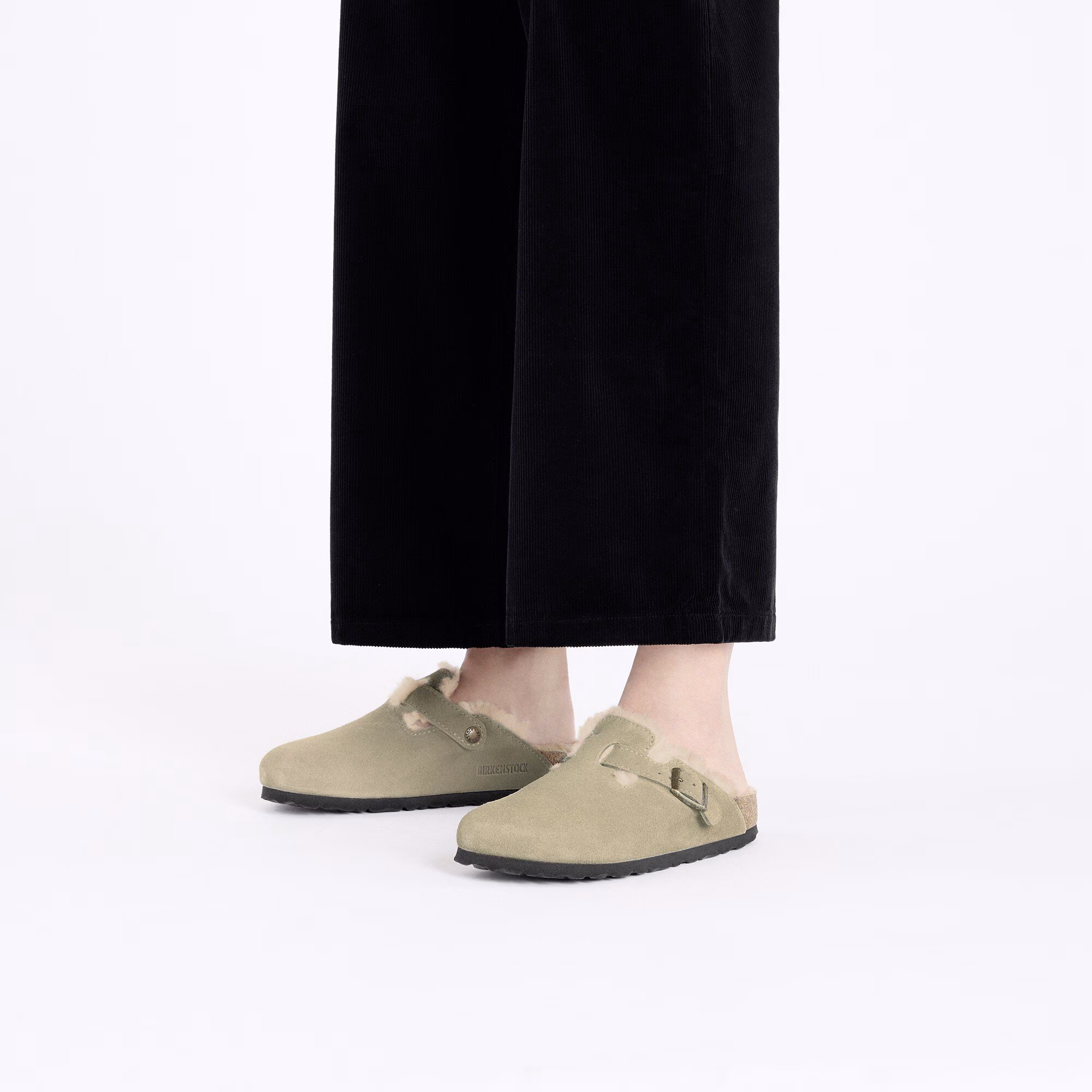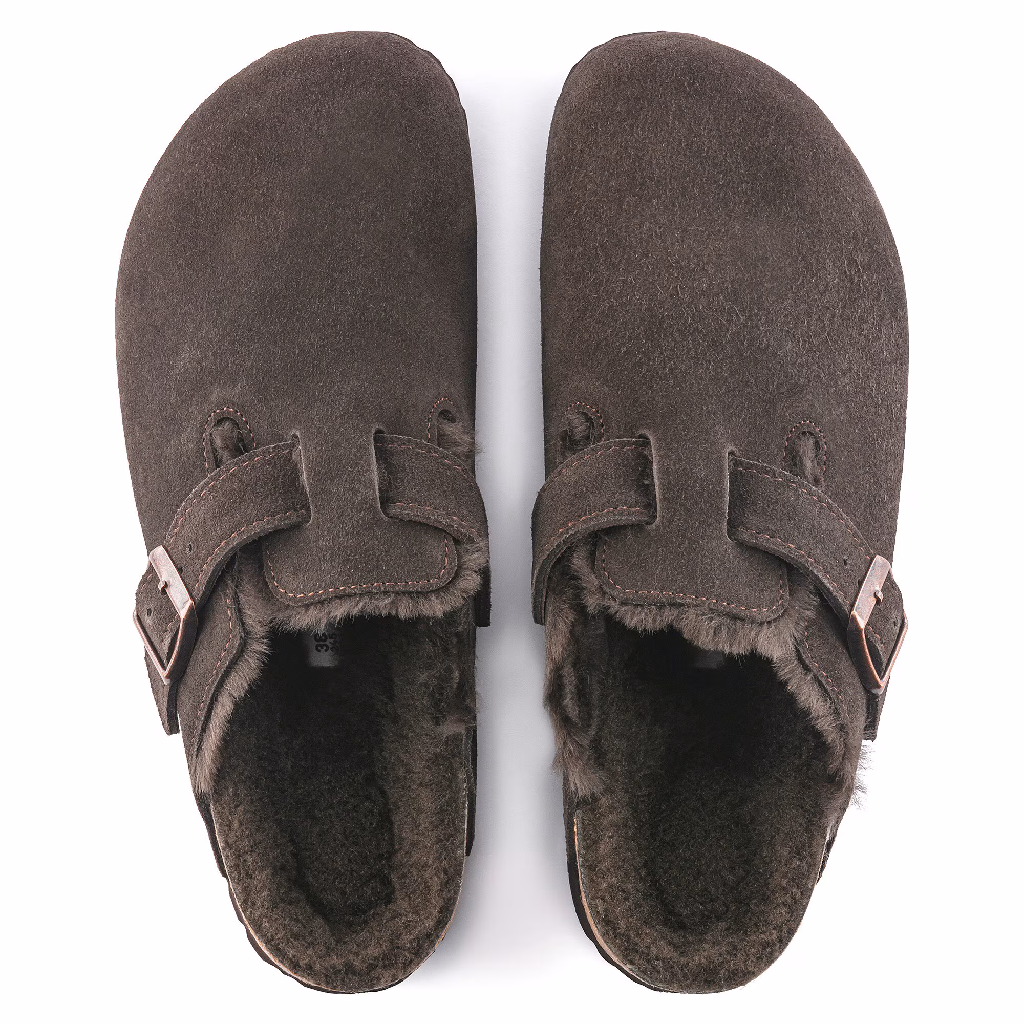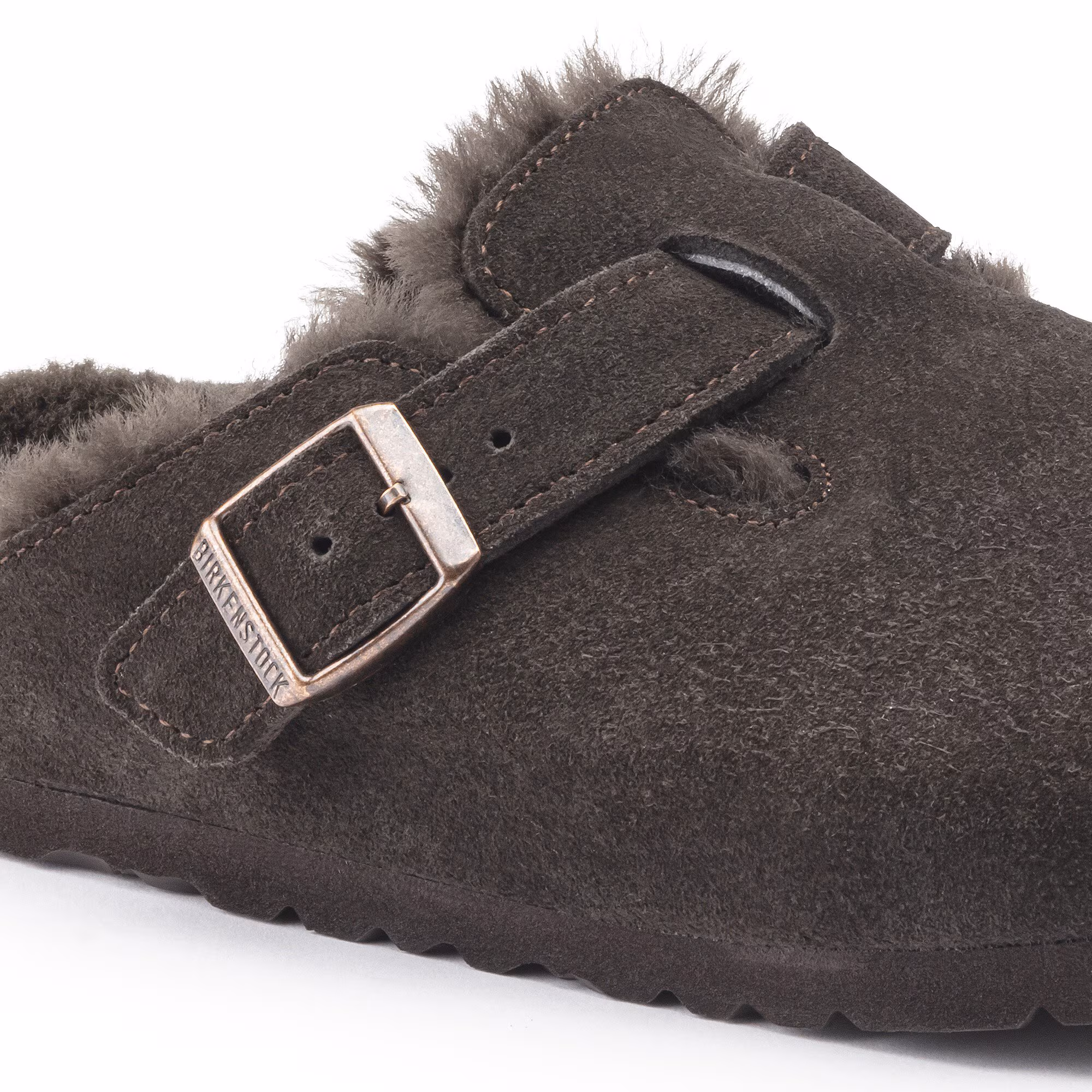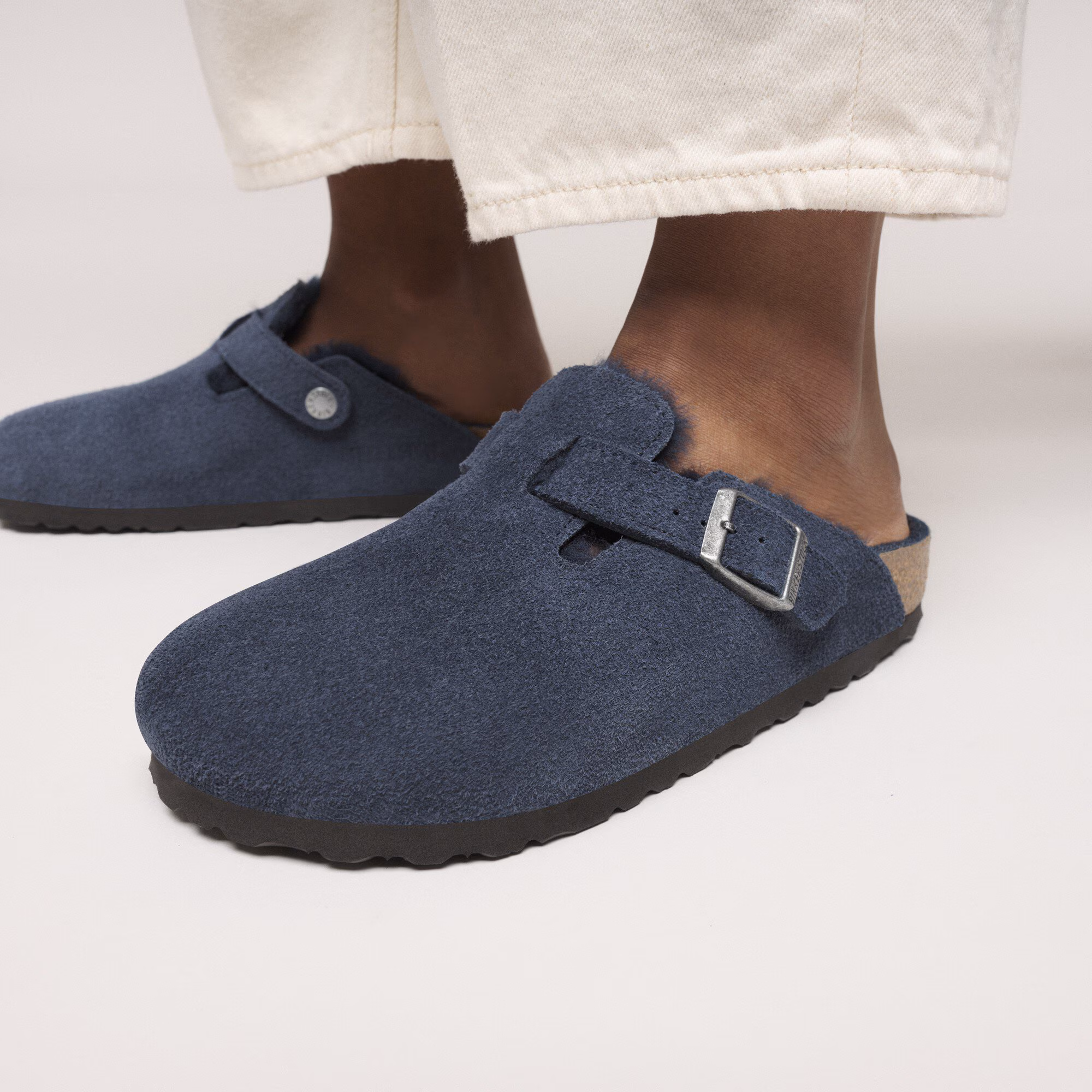 Am liebsten außergewöhnlich! Der Clog Boston, ein Klassiker unter den BIRKENSTOCK Modellen zeigt sich hier in einer besonders kuscheligen Variante aus echtem, sehr hochwertigem Veloursleder. Die natürliche Lammfelldecksohle und die mit Lammfell unterfütterten Riemen wirken stylisch und sorgen für warme Füße. Der geeignete Schuh für gemütliche Winterabende am Kamin!